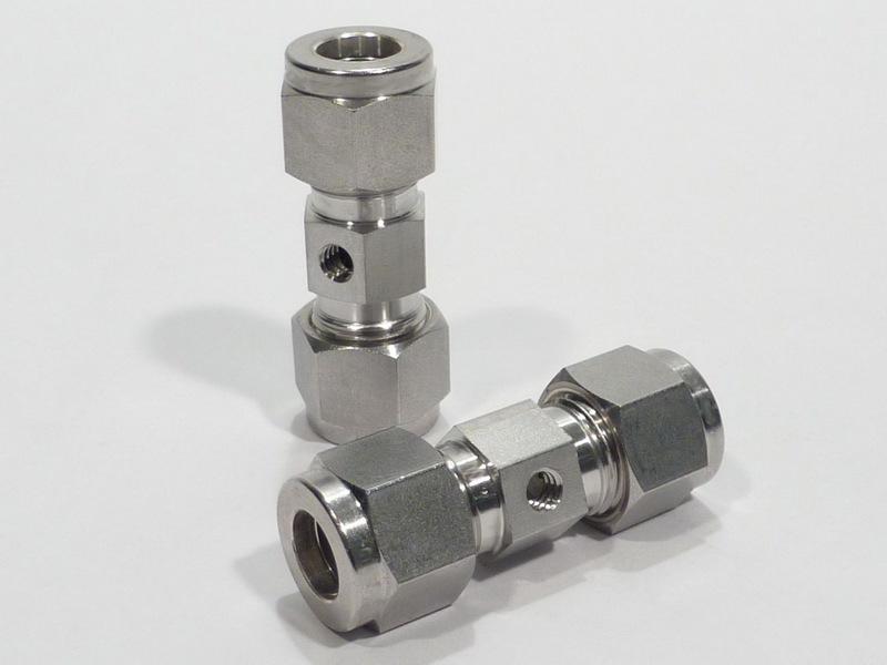 Edelstahl-Schraubfitting Kupplung 2×3/8″ mit UNF-10-24 Bohrung