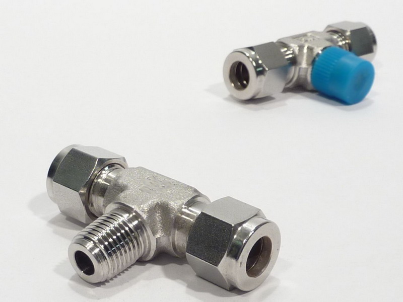 Einschraub-T-Stück 3/8″ DK-LOK x1/4″ BSPTA Edelstahl