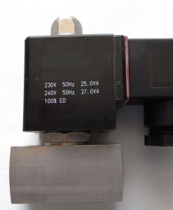 Hochdruckventil Edelstahl elektrisch 230 VAC NC, 100 bar, 2/2 Wege, direkt gesteuert, 2×1/4″ Innen-Gewinde